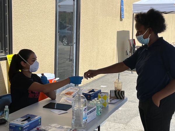 (Compton, California) Mayor Aja Brown (Seen In Blue Suit) Supporter of The Nurses Pub